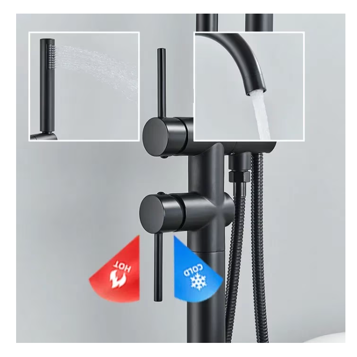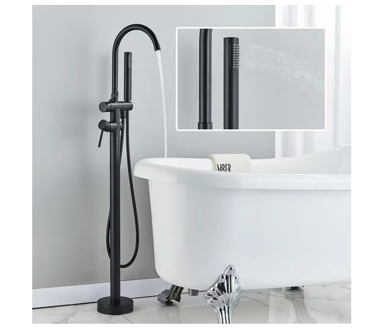 Baterie Baie pentru Cada, Montaj podea, Tip freestanding, Cadru Rotund, Finisaj Negru Mat, Dimensiune 117 cm