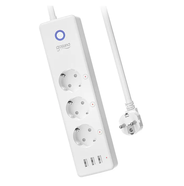 Prelungitorul Smart Gosund are 3 prize USB cu 15W (5V, 3A) si 3 prize standard, toate intrarile sunt protejate de supratensiune.