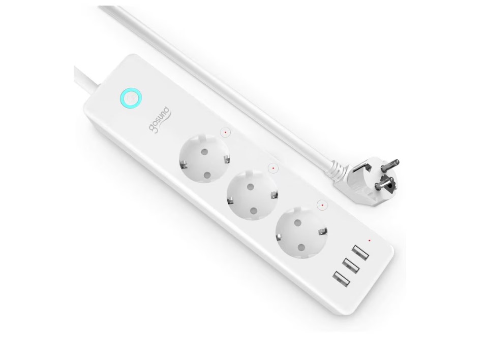 Prelungitor inteligent Gosund P1, Wireless, 3 prize, 3xUSB, 15W, 3A, intrerupator, 1.5 m, compatibil Alexa si Google Assistant, Android/iOS