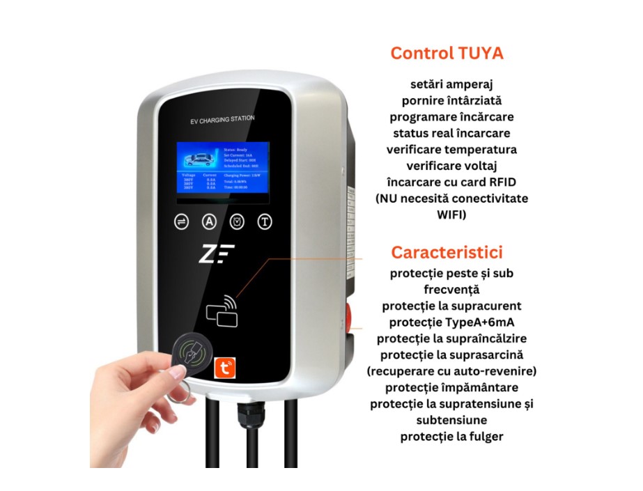 Fii primul care scrii o recenzie pentru „Statie de incarcare perete/stalp Smart, 380V, Tuya, masina electrica/hybrid, 11KW cu limitator de putere 8-10-13-16-32A TYPE 2, display cu temporizare, RFID card”